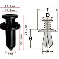 Клипса T-1033 (KJ-2223,KJ-034) автомобильная с нажимным штырьком, 25шт.
