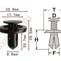 Клипса T-1029 (KJ-1013) автомобильная с нажимным штырьком, 25шт.