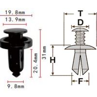 Клипса T-1039 (KJ-2238,KJ-2158) автомобильная с нажимным штырьком, 25шт.