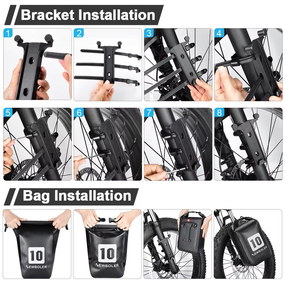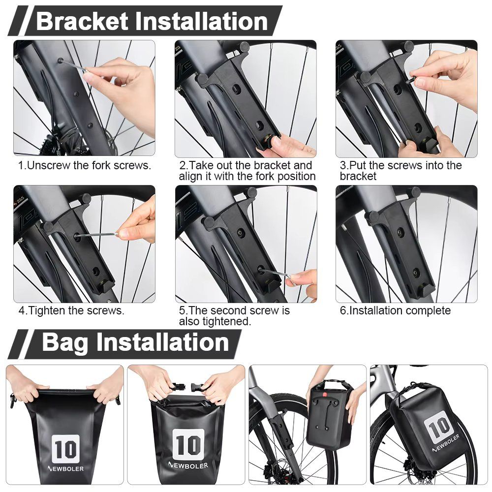 Полностью герметичная сумка на вилку велосипеда, можно установить через болты на жесткую вилку гравийного велосипеда или с помощью хомутов на амортизационную вилку или на вилку без отверстий для болтов.