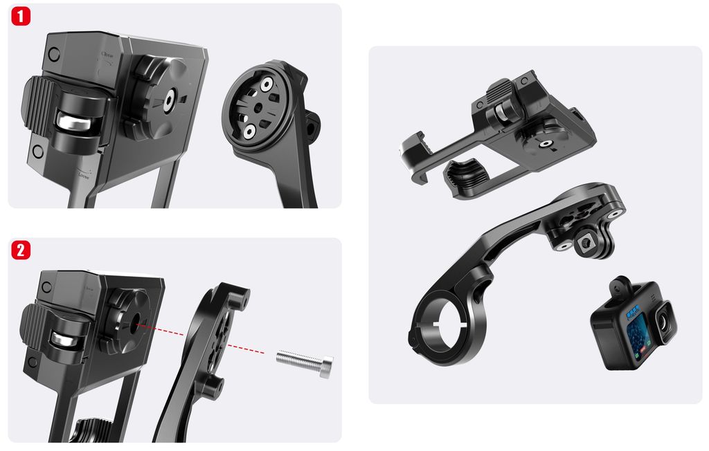 В комплекте приставки для установки под разные диаметры руля. Держатель регулируется под разные телефоны Под размер телефона 4.7-7.2 дюйма Быстрый зажим для телефона Возможность снять телефона вместе с зажимом
