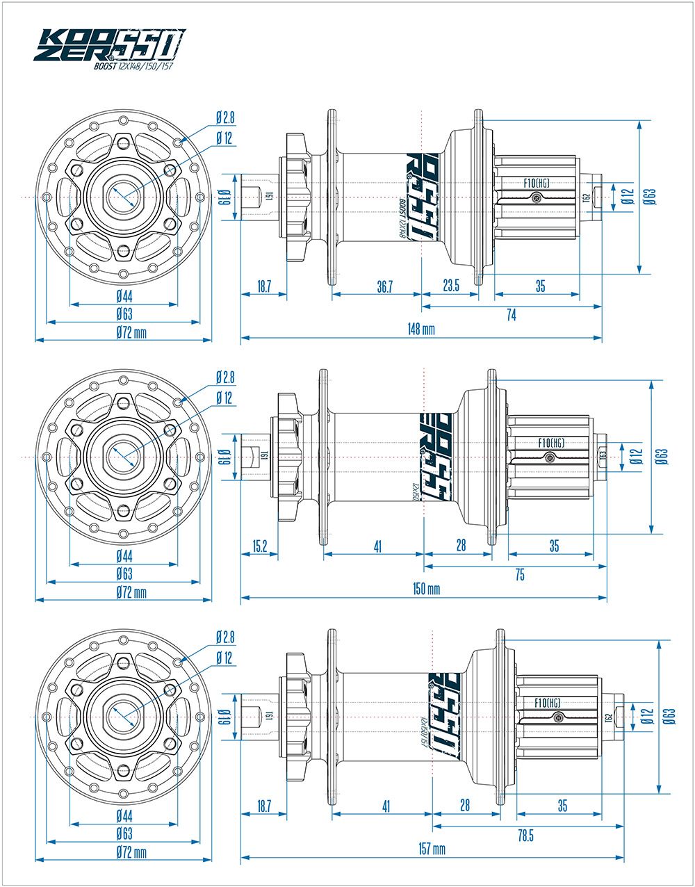Втулка задняя KOOZER 550 SUPER BOOST. 157*12мм. 32H. HG