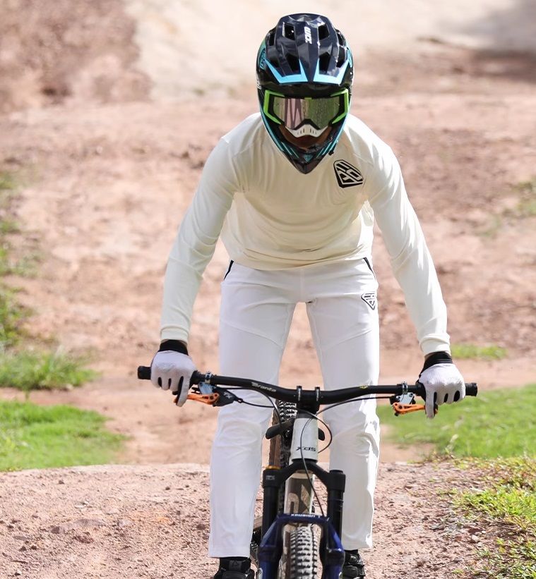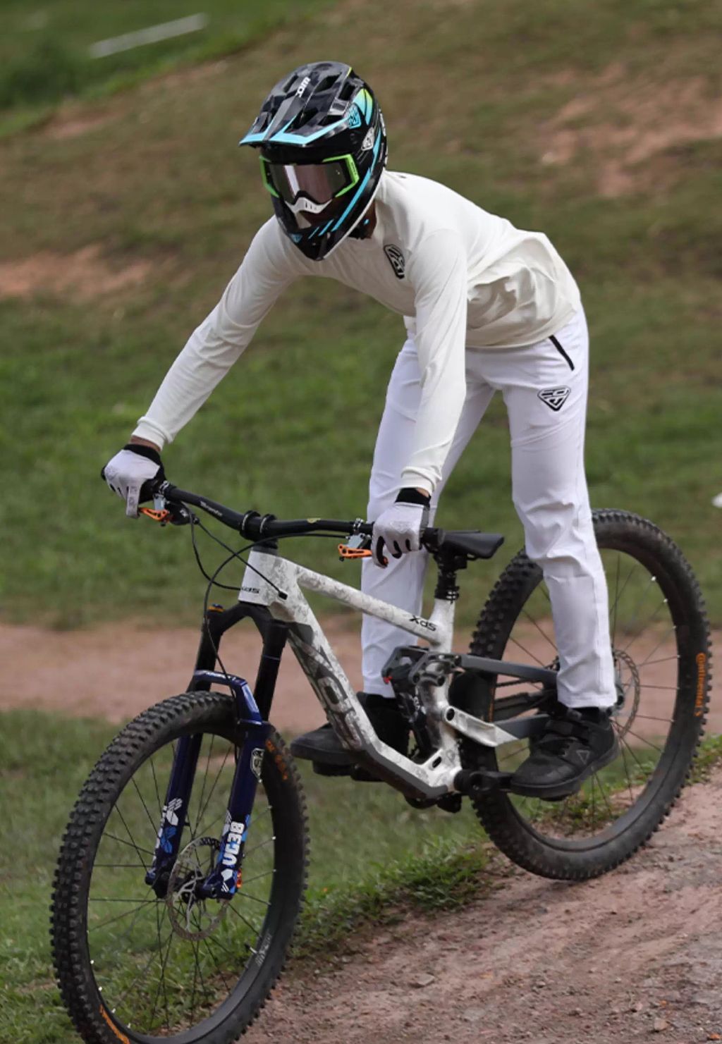 Велоштаны выполнены из тянущегося дышащего затеряла, крой выполнен так что можно носить защиту коленей, помощью липучки модно регулировать обхват нижней части штанов, делая штаны ужи или шире.