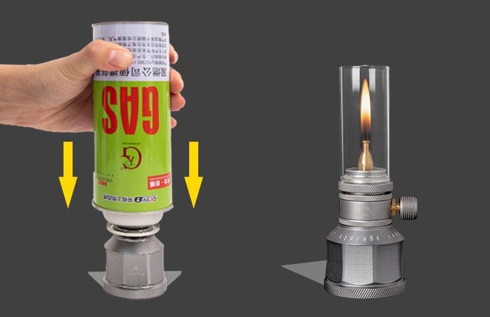 Данный фонарь устанавливается на туристический (Резьбовой EU) баллон с резьбой или через переходник на бытовой (цанговый), также в комплекте перезаряжаемый баллон, который заправляется с помощью бытового баллона (цанговый)