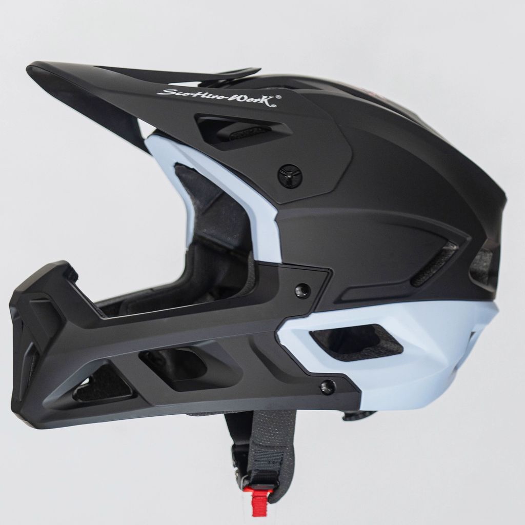 Велосипедный шлем SCOHIRO-WORK DH-1 (L (58-62 см), черный-голубой)
