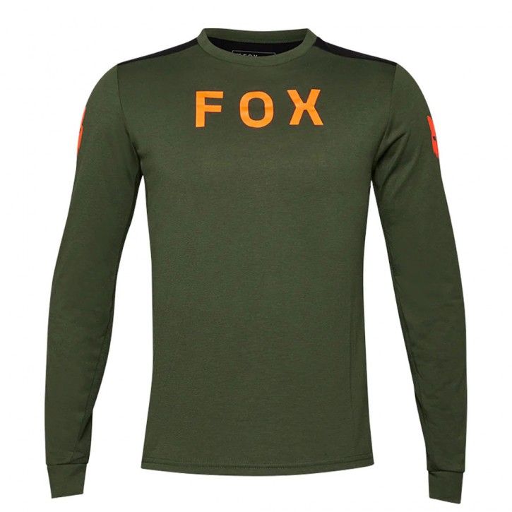 Велосипедная джерси с длинными рукавами FOX Ranger DR LS. Черный-Болотный (M)