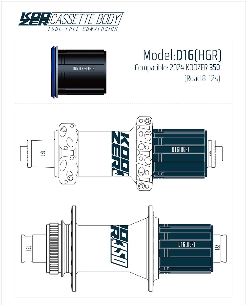 Барабан для втулок KOOZER серия: "D" (D16 (HGR for Road 8-12S))