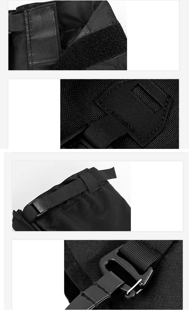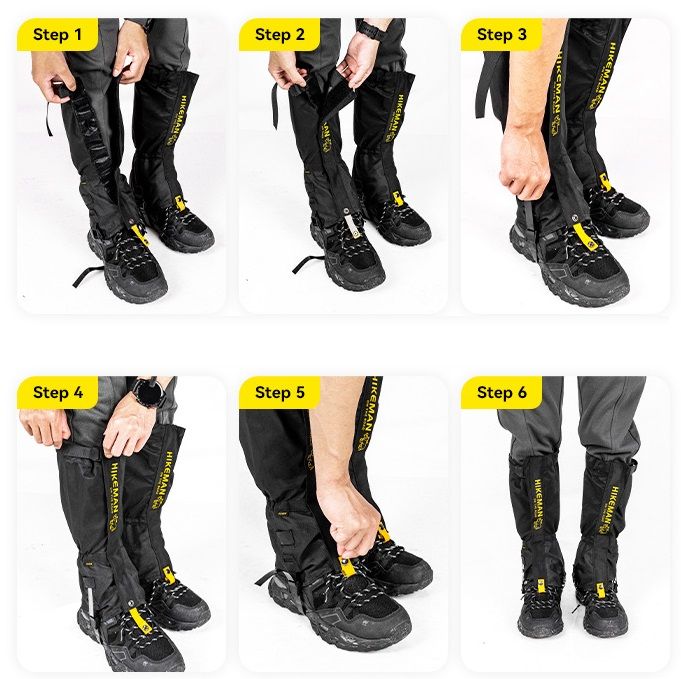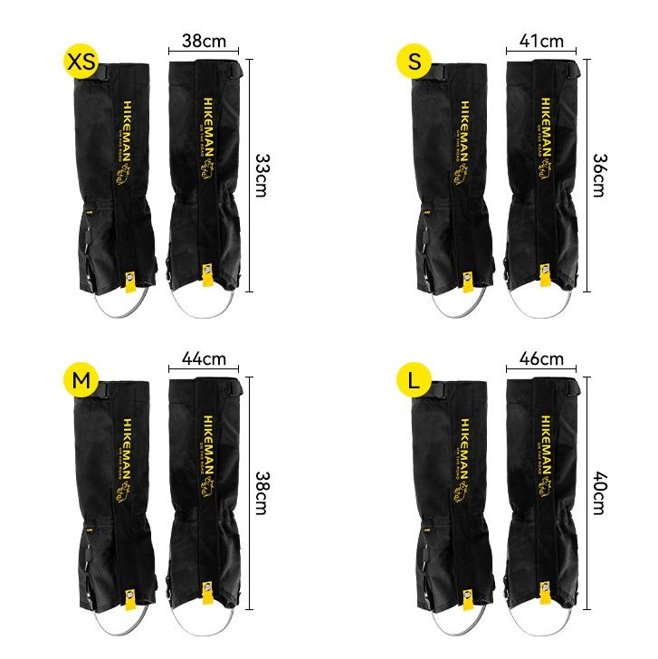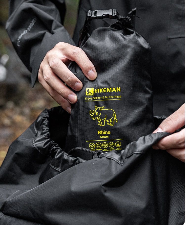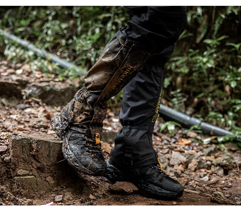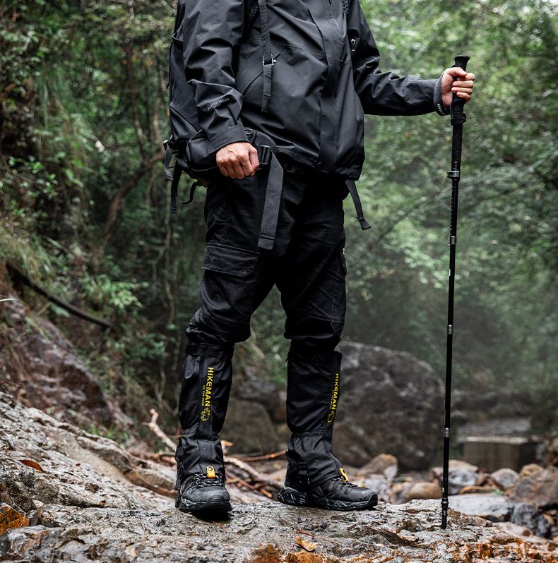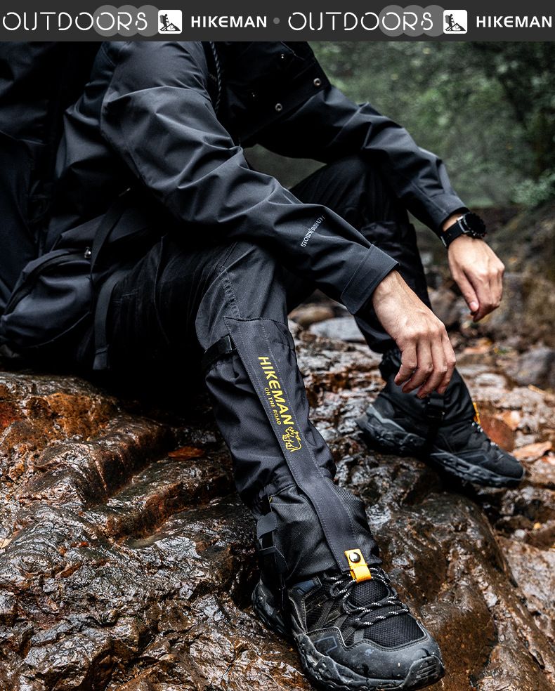 Туристические гамаши HIKEMAN изготовлены из двух видов ткани низ из износостойкой 600D близкий по характеристикам к Cordura и верхней мембраной ткани с показателем паротведения 20 000 H2O. Верхняя часть фиксируется ремнем, в центральной части вшита резинка для лучшей посадки, нижняя часть фиксируется на кнопку к шнуркам ботинка и армированным ремешком TPU проходящим под подошвой выдерживай температуру -30. Гамаши созданы главным образом для зимних походов, также их можно использовать для защиты ног от грязи, мокрой травы, песка.