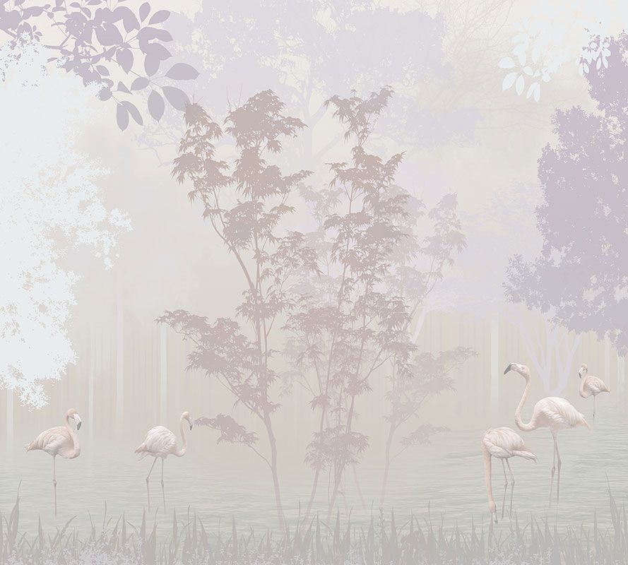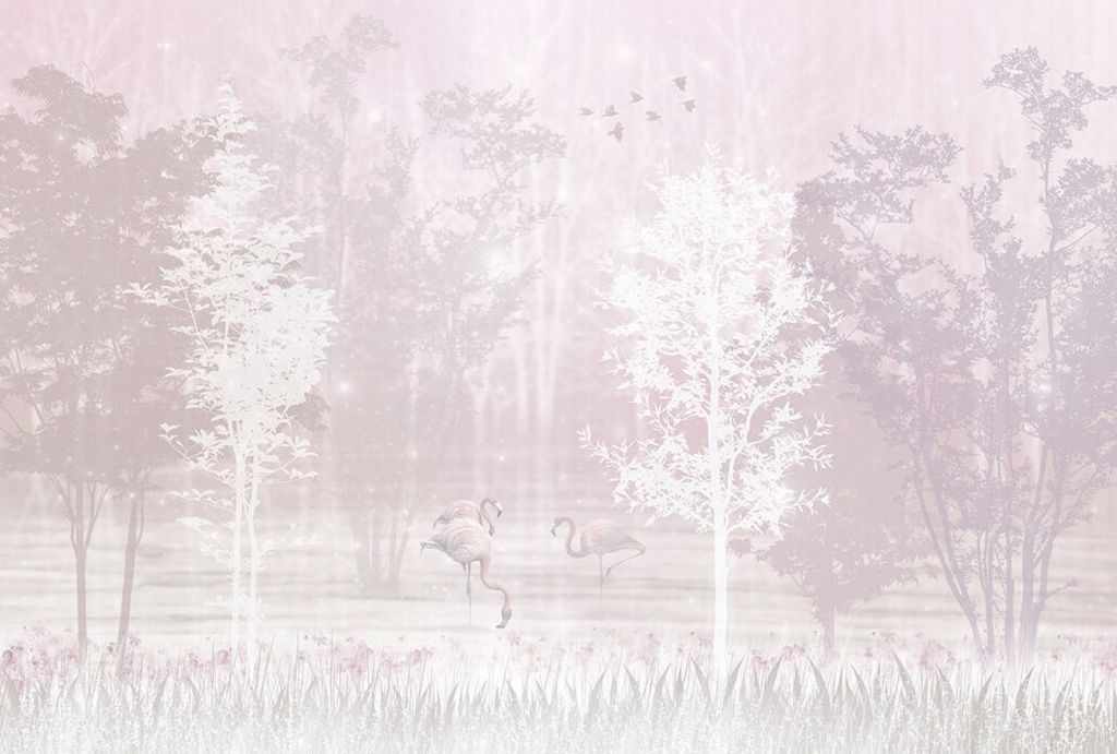 Фотообои F-080 Розовый лес с фламинго 400х270