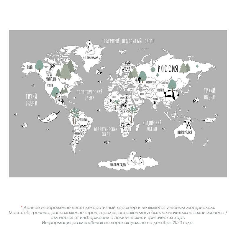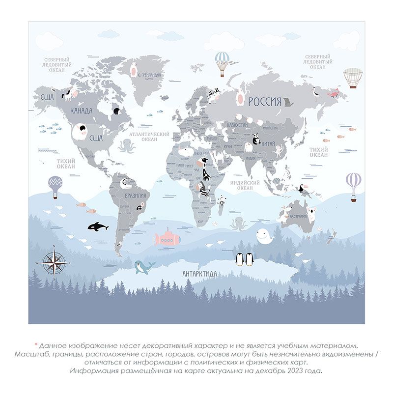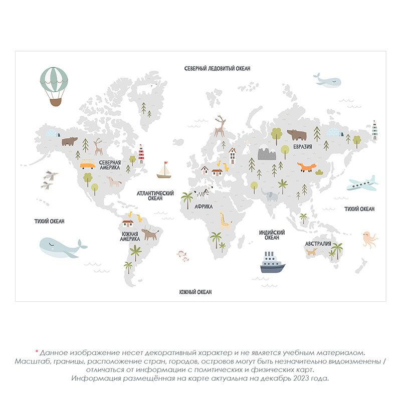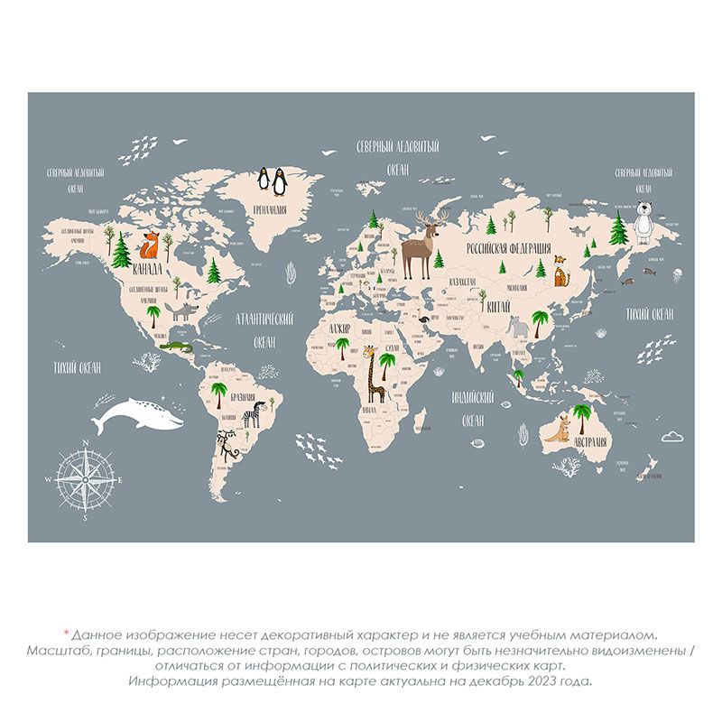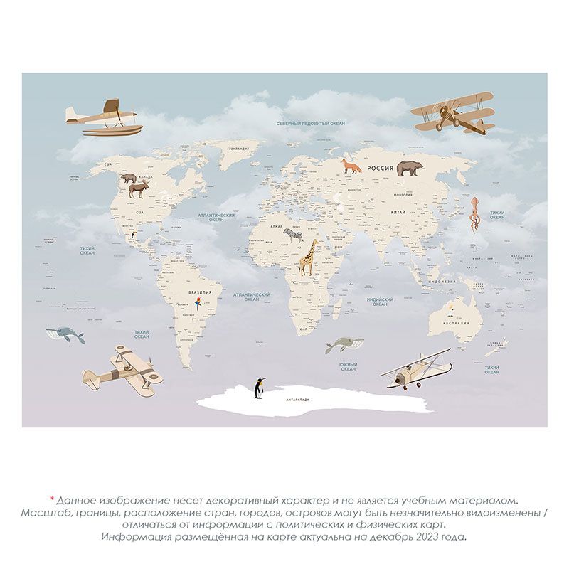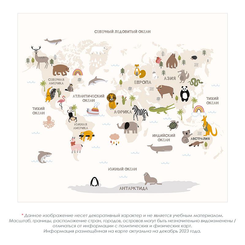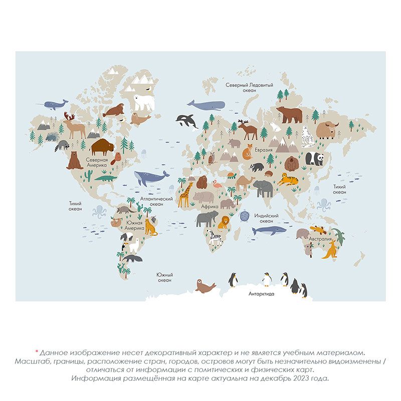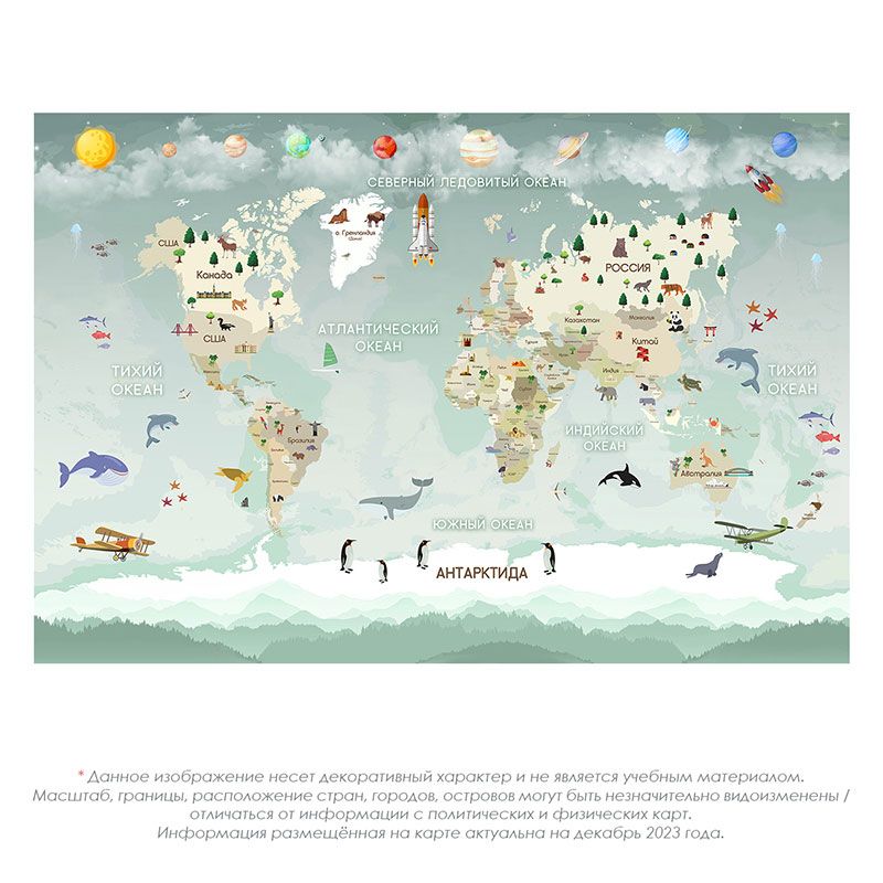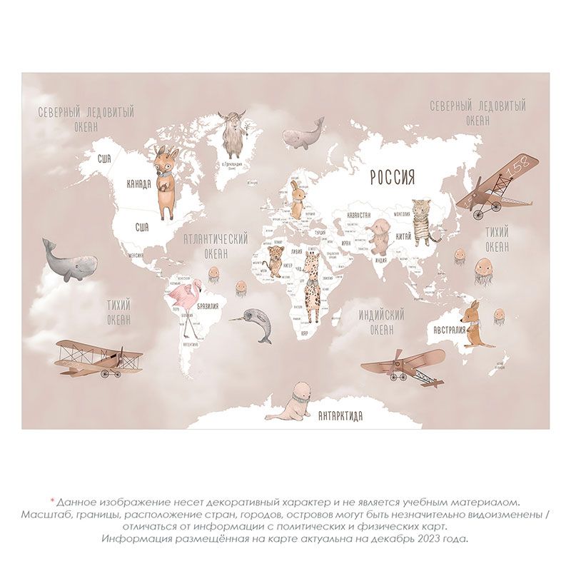 Фотообои F-125 Детская карта мира с животными 400х270_14.09.2023