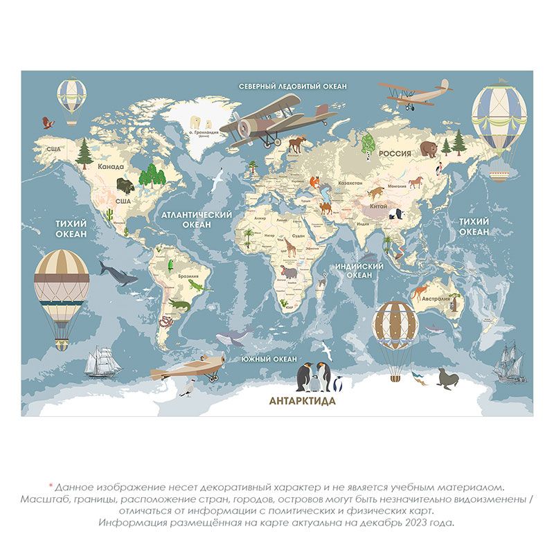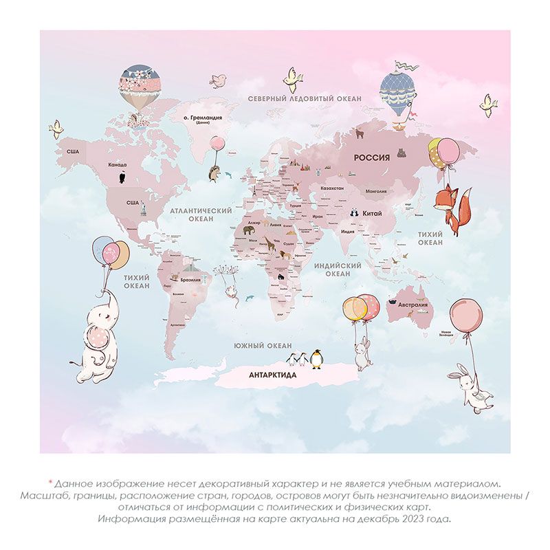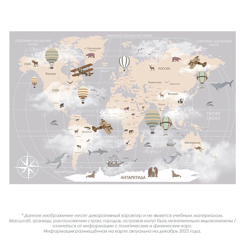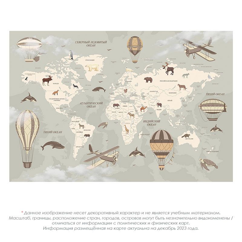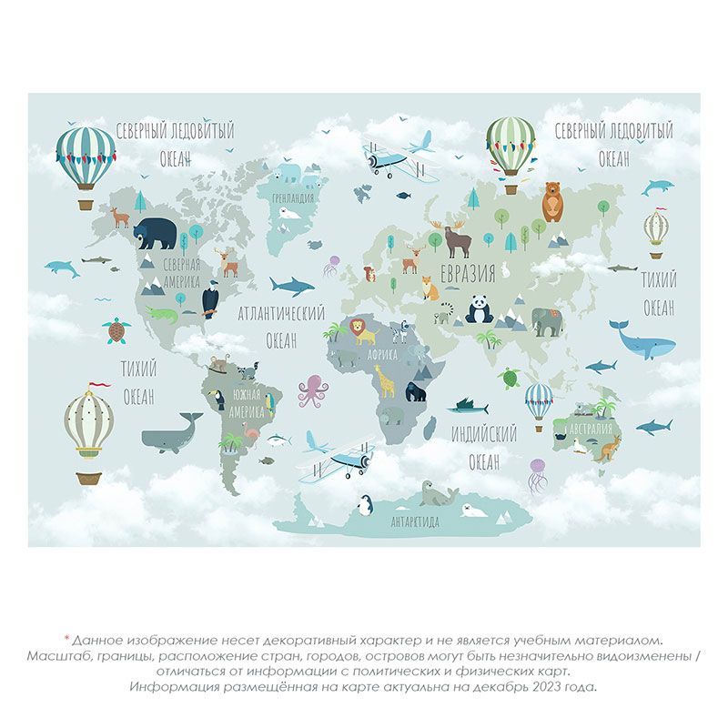 Фотообои F-272 Детская карта мира с шарами и животными 400х270_14.09.2023