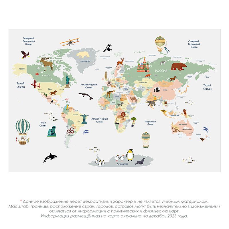 Фотообои F-132 Карта с животными и достопримечательностями 400х270_14.09.2023