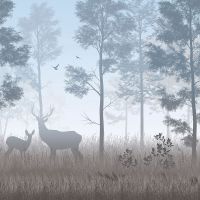 Фотообои F-105 Олени в вечернем лесу 300х270