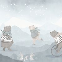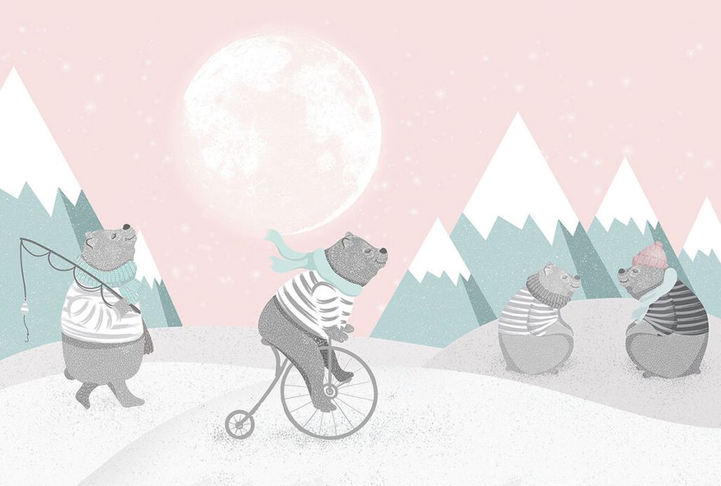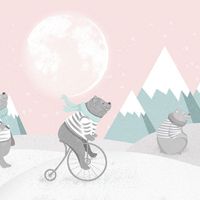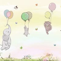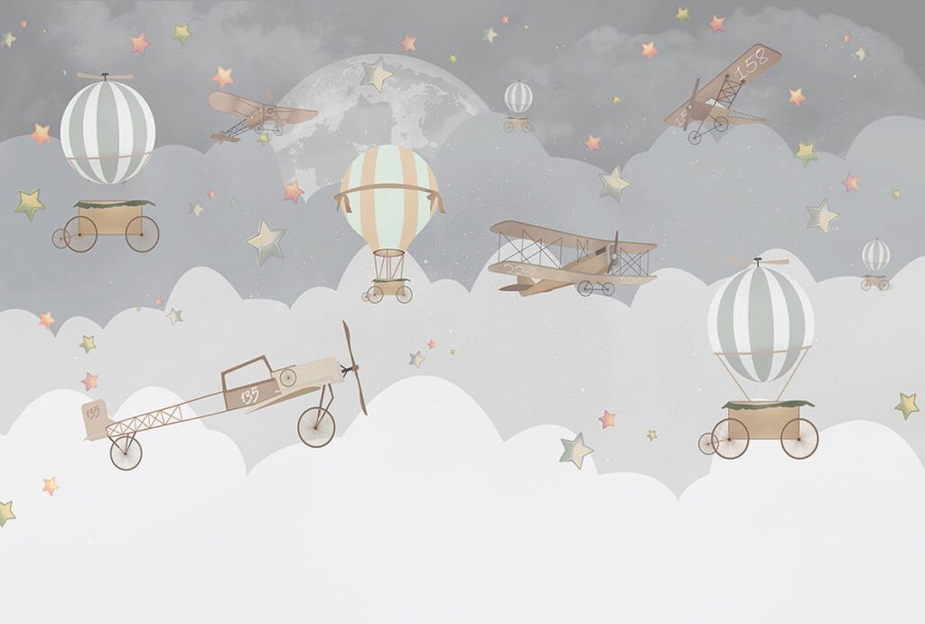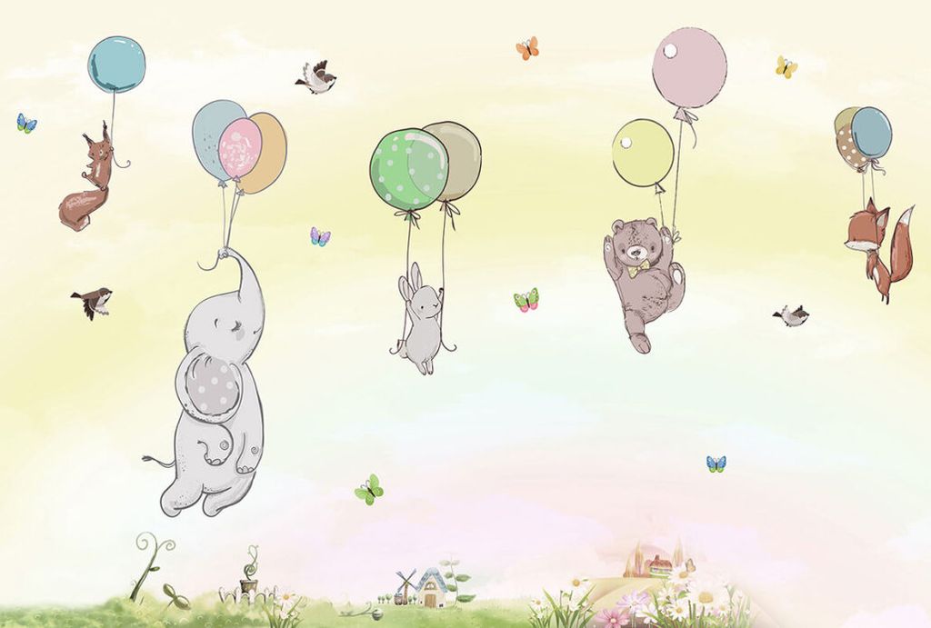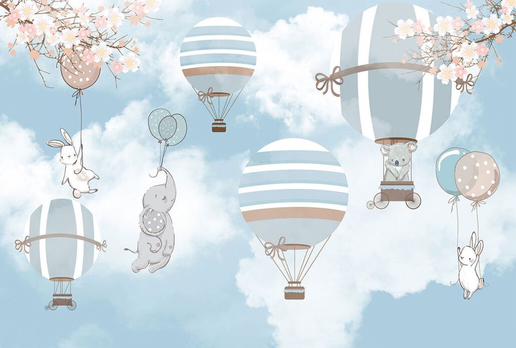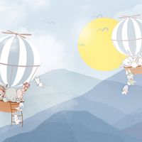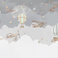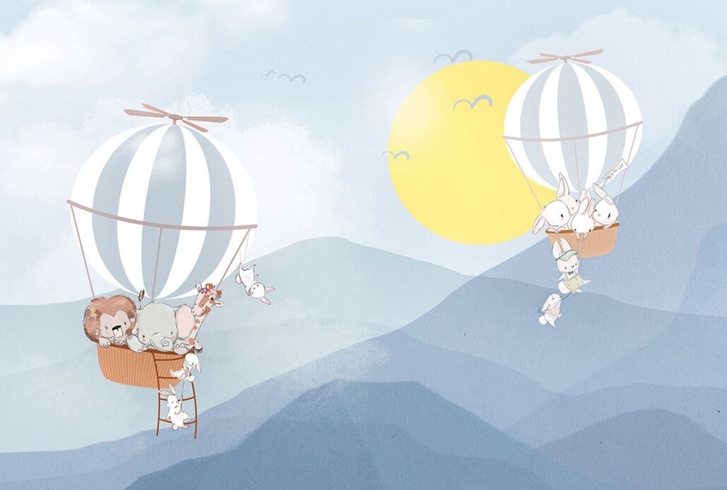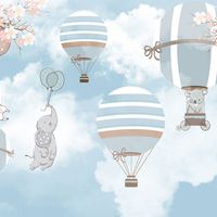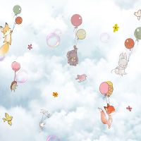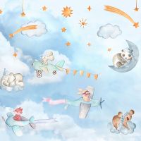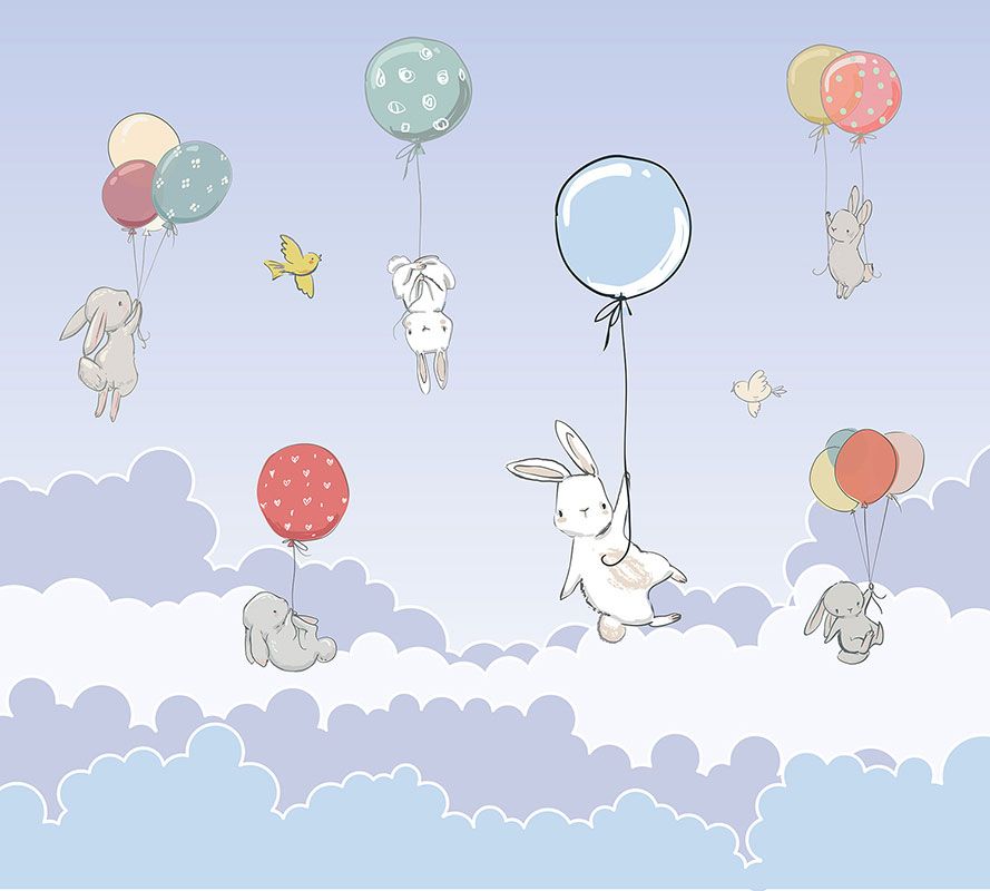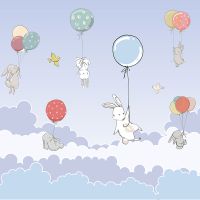 Фотообои F-357 Зайки в небе пастельные тона 300х270