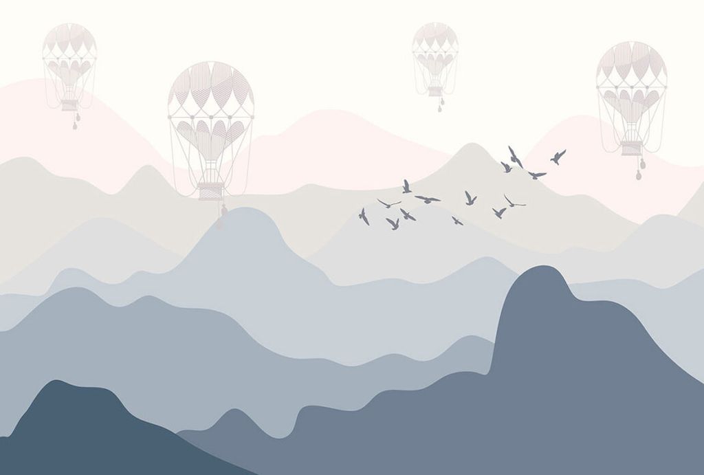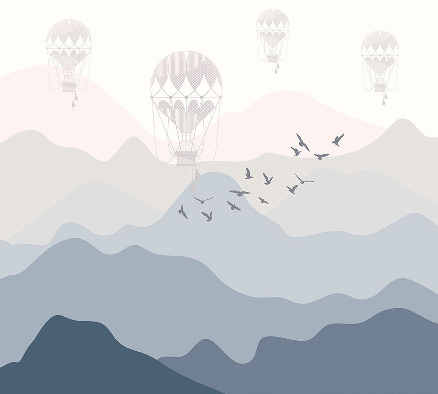 Фотообои F-330 Розовые горы с воздушными шарами 300х270