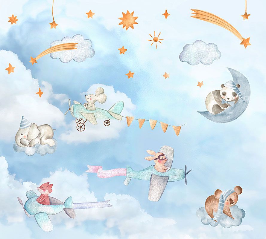 Фотообои F-398 Животные летающие в облаках 2 400х270