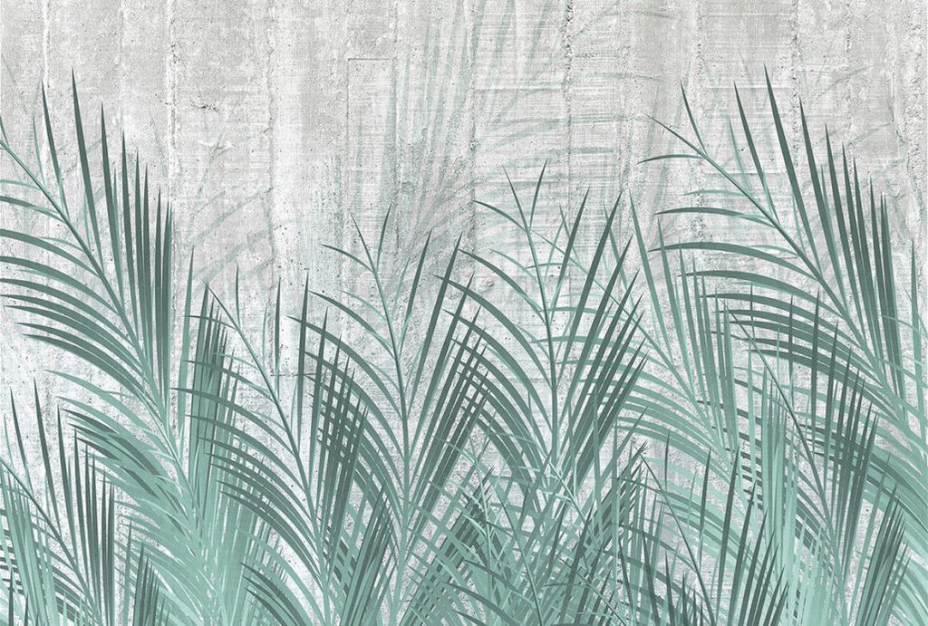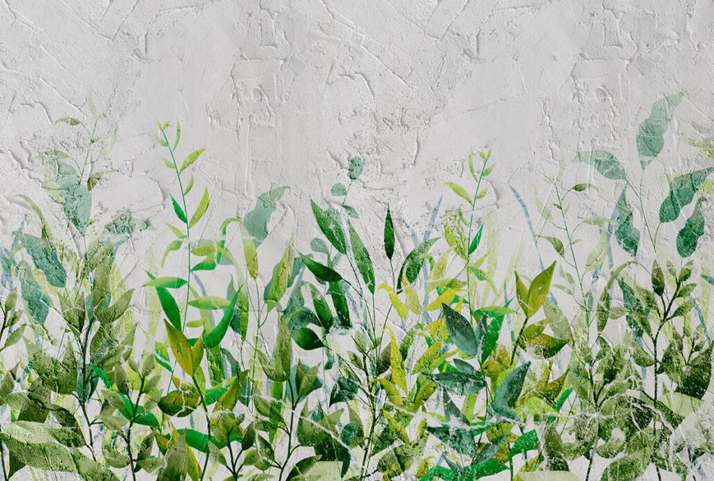 Фотообои F-091 Зелёные листья на бетоне 400х270