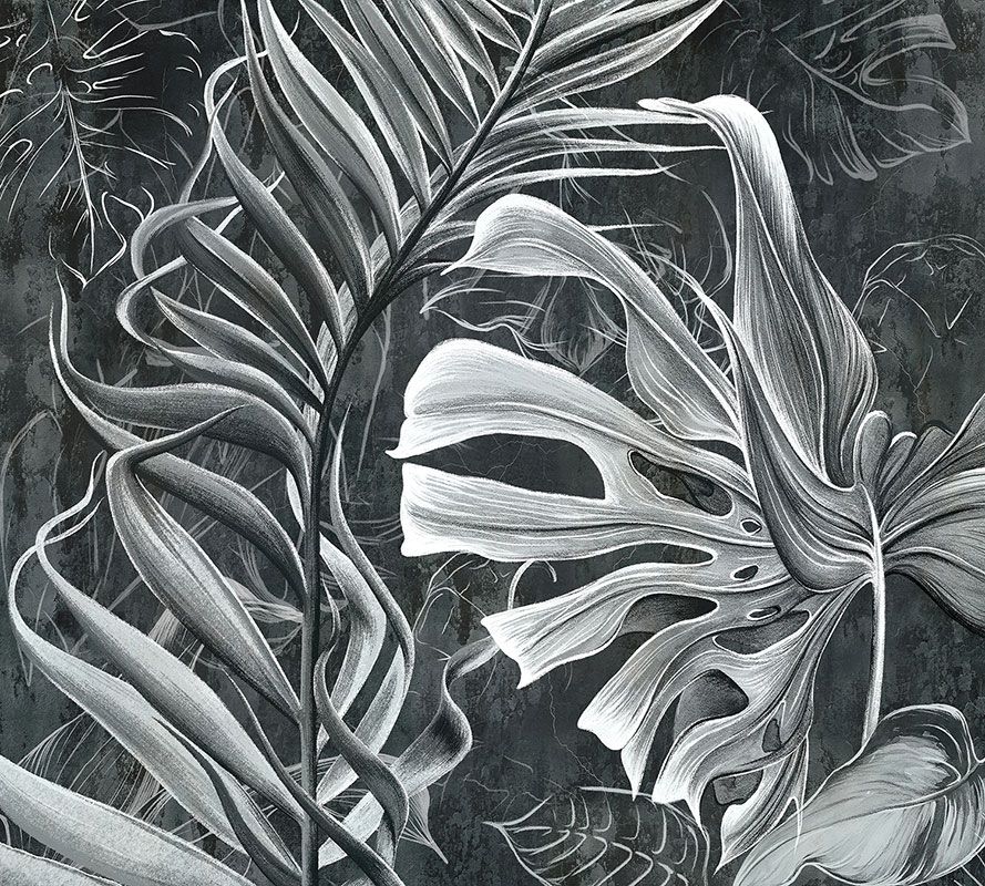 Фотообои F-153 Крупные листья на бетоне гранж 400х270