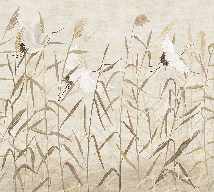 Фотообои F-453 Аисты в тростнике (повторяющиеся) 300х270
