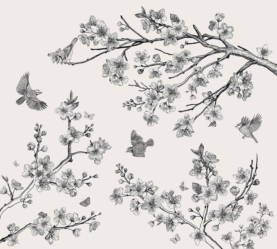 Фотообои F-215 Полевые цветы контур (повторяющиеся) 300х270
