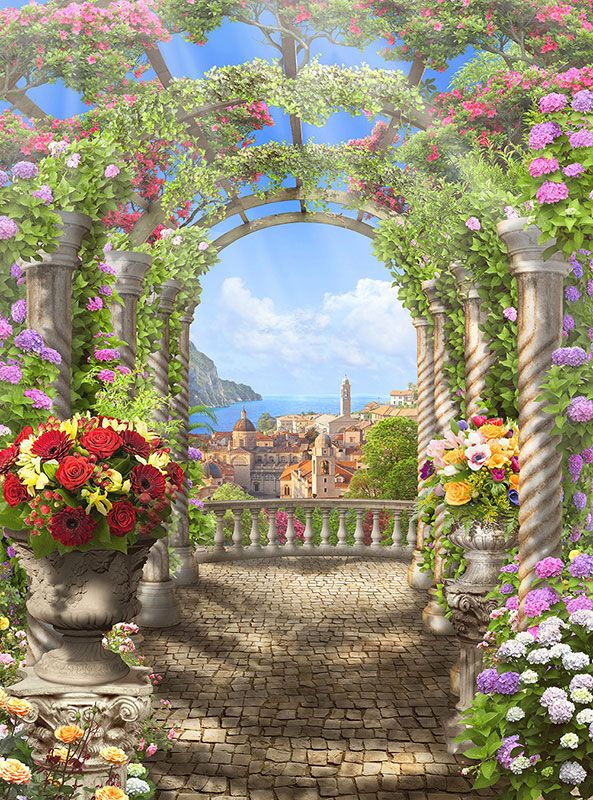 Фотообои F-166 Терраса с цветочной аркой 200х270