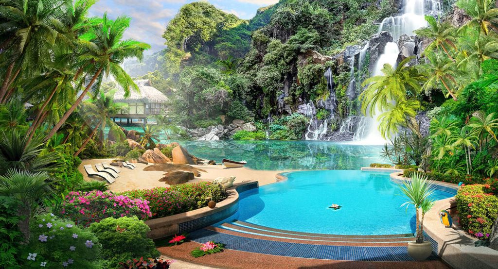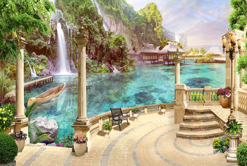 Фотообои F-098 Проход к старинной беседке и морю 400х270
