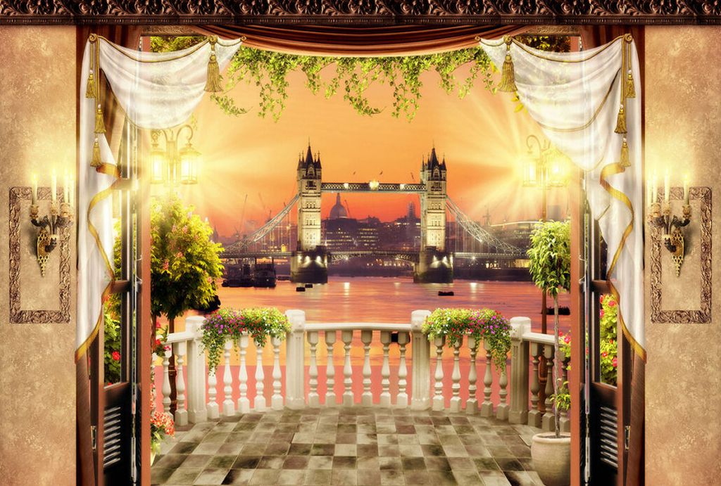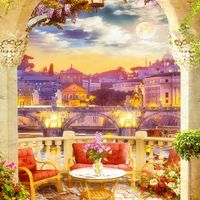 Фотообои P-018 Арочные окна с видом на город 400х270