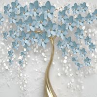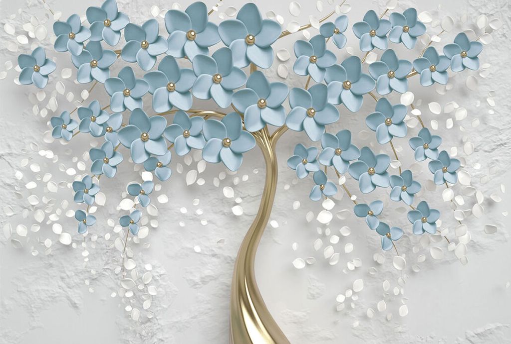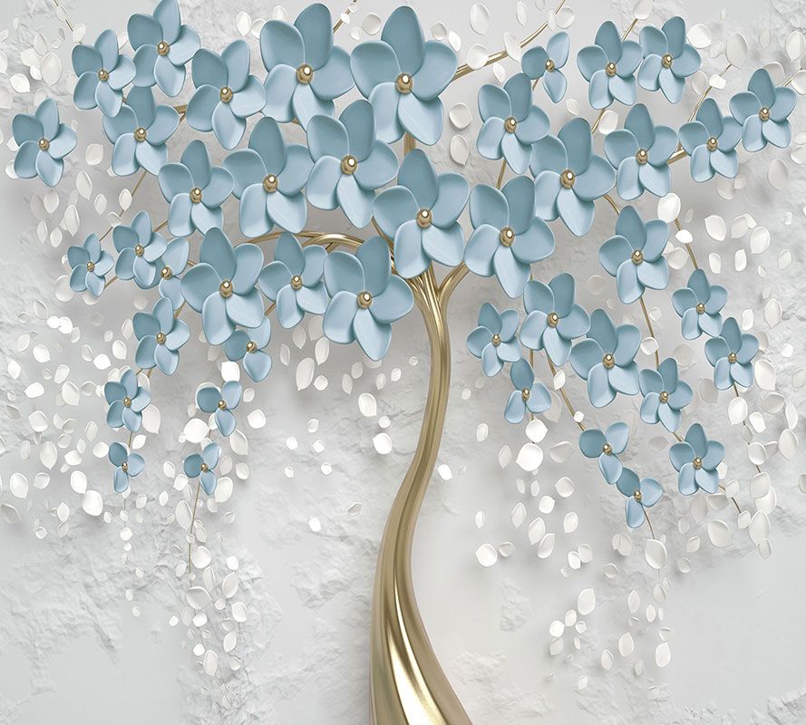 Фотообои T-362 Дерево с голубыми цветами 300х270