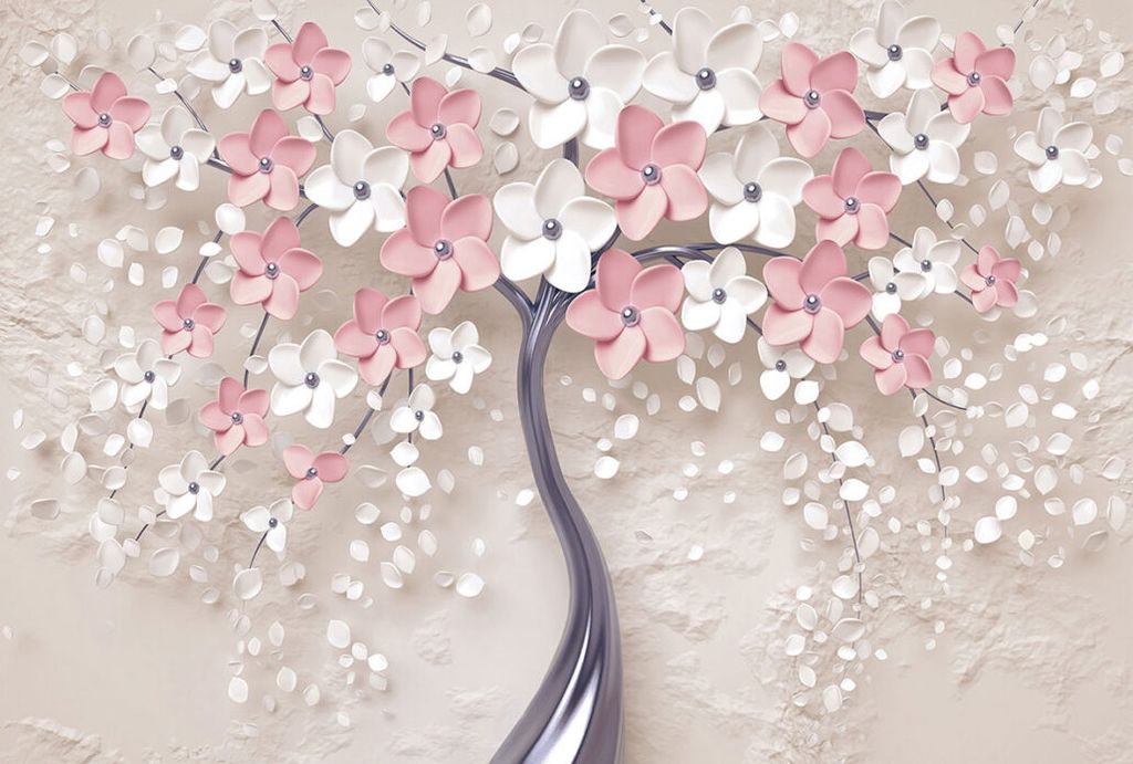 Фотообои T-359 Дерево с белыми и розовыми цветами 400х270
