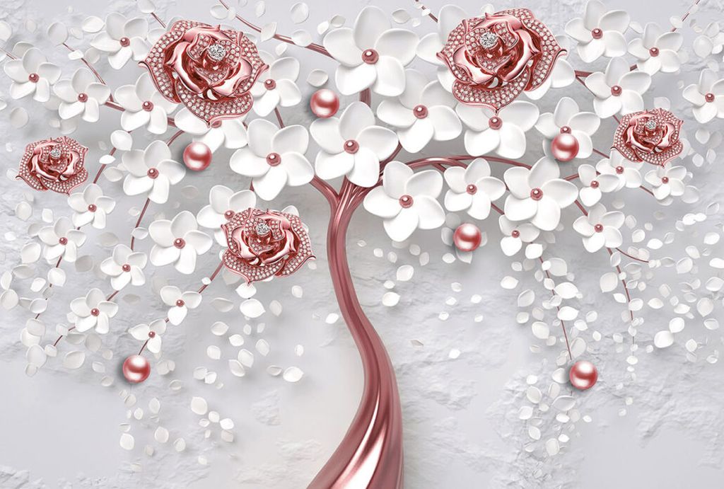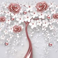 Фотообои T-360 Дерево с белыми и розовыми цветами 2 300х270