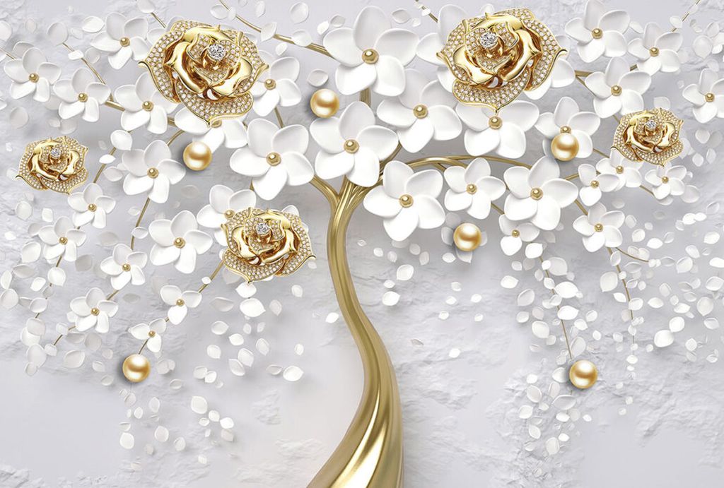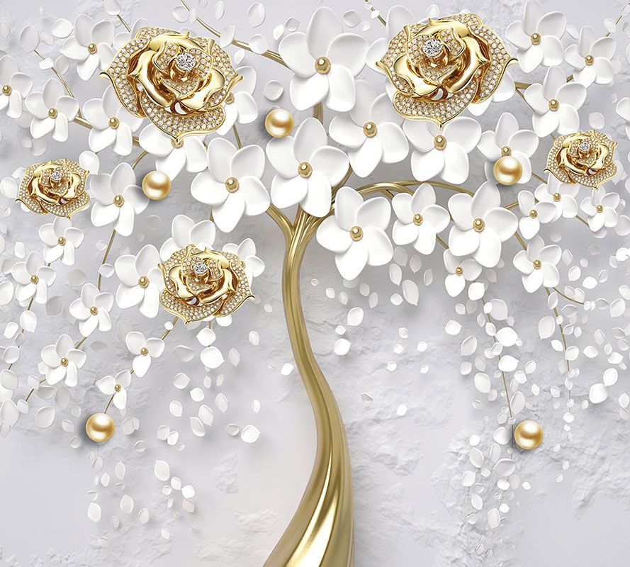 Фотообои T-292 Дерево с золотыми розами 2 300х270