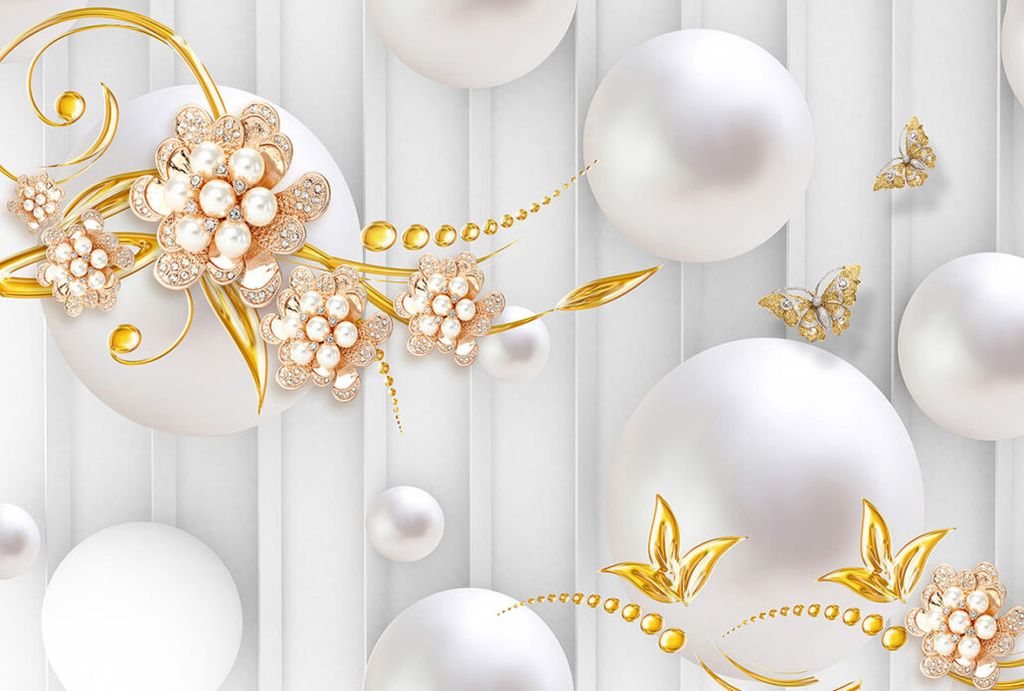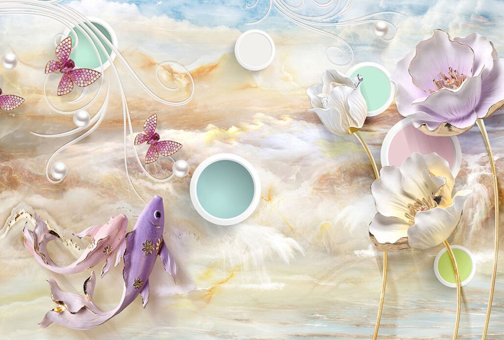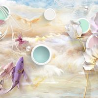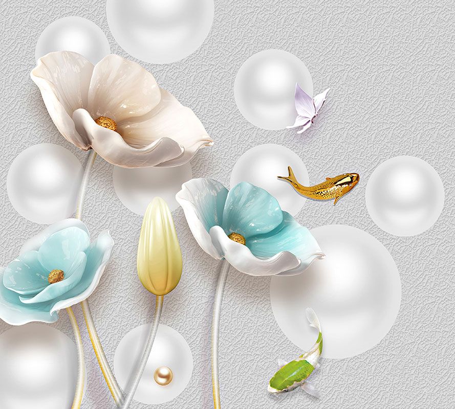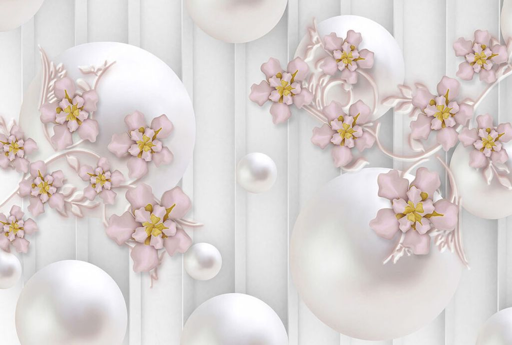 Фотообои T-128 Керамические цветы на фоне шаров 300х270