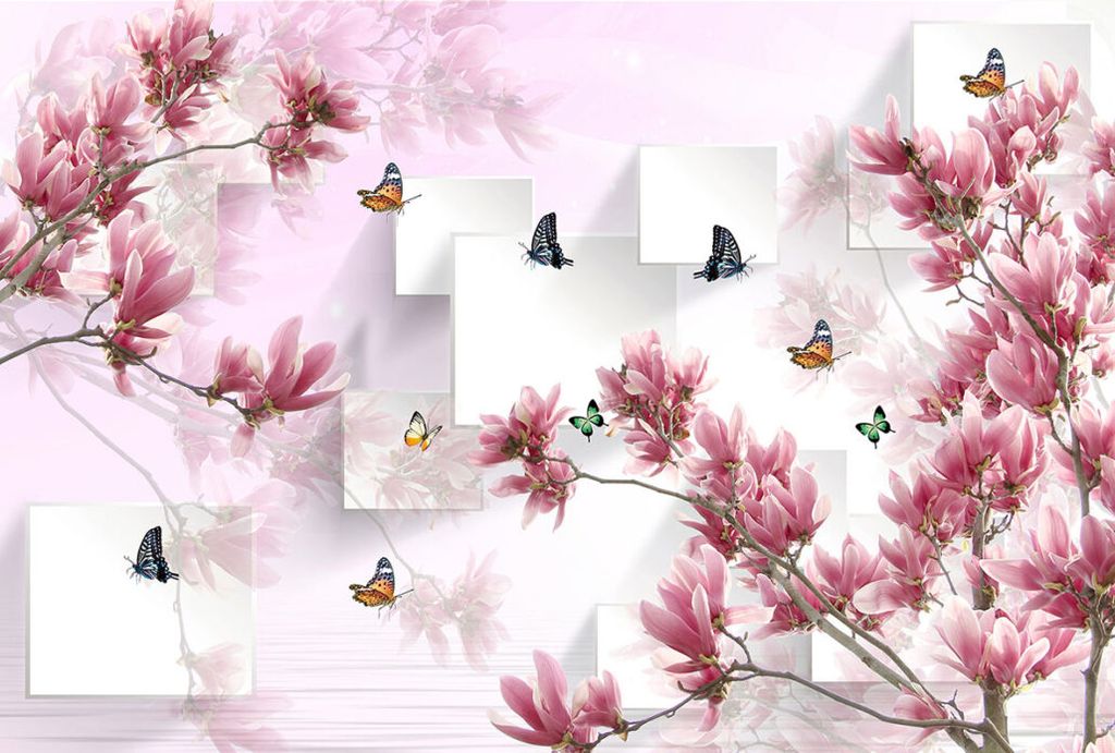 Фотообои T-150 Магнолия с бабочками 400х270