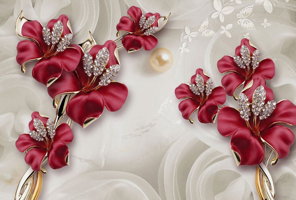 Фотообои T-135 Красные цветы на шелке 400х270
