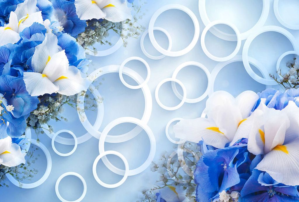 Фотообои T-131 Кольца с синими цветами 400х270
