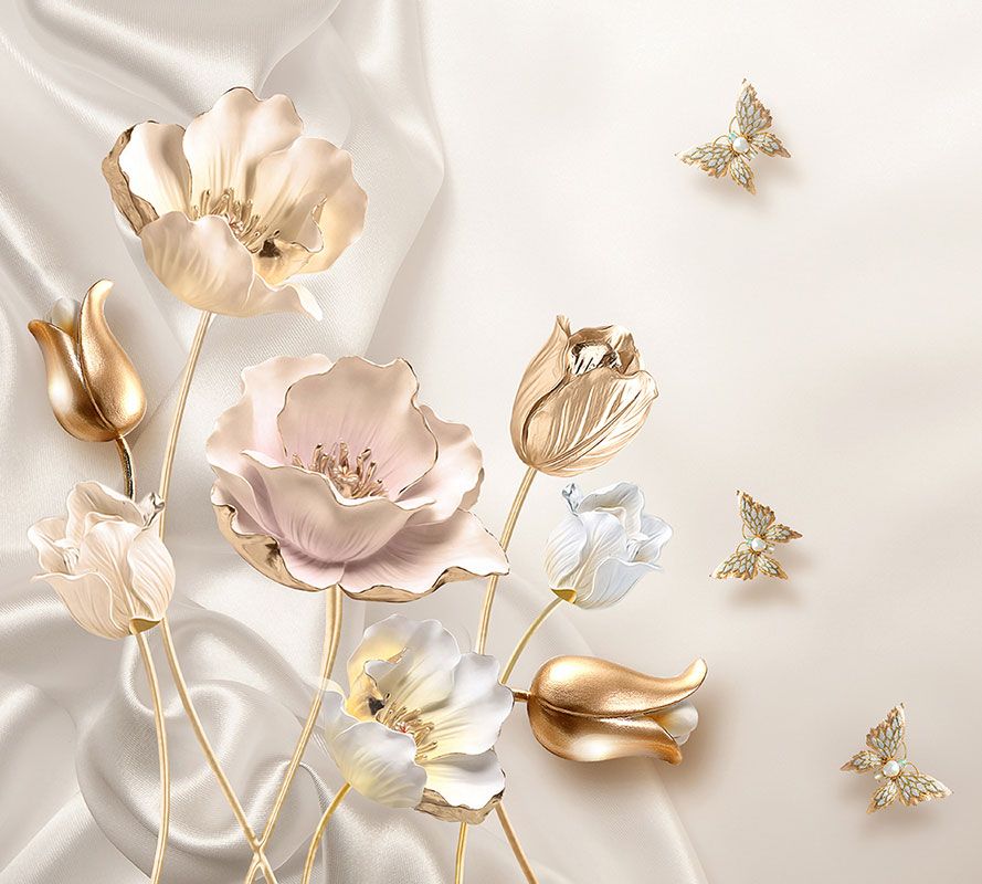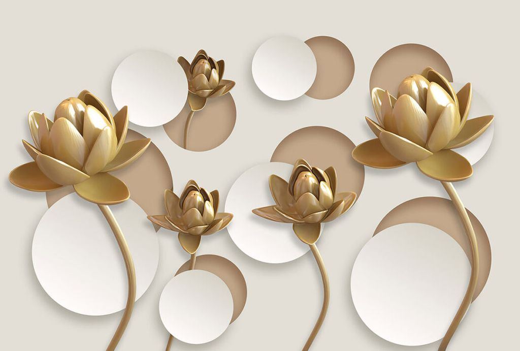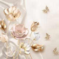 Фотообои T-116 Золотые цветы на бежевом фоне 400х270