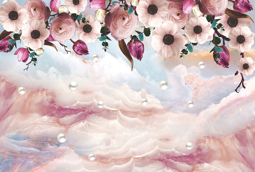 Фотообои T-095 Жемчуг и розовые цветы 400х270
