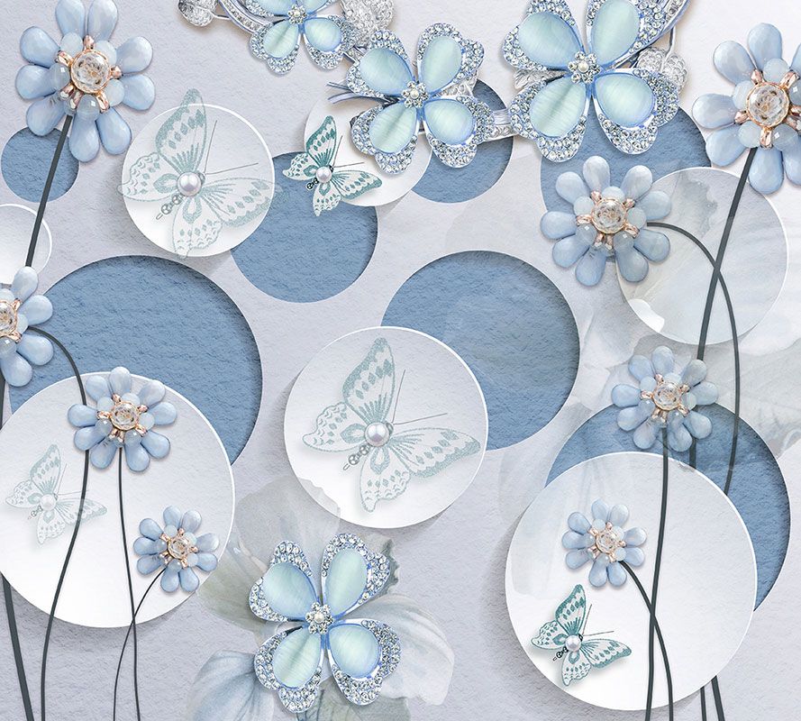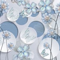Фотообои T-076 Голубые цветы на кругах 300х270