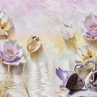 Фотообои T-138 Лебеди на фоне цветов 400х270
