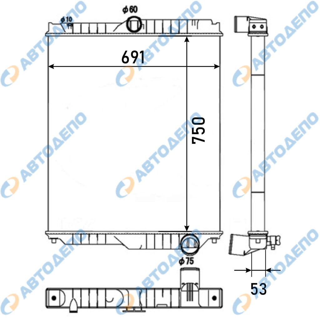Радиатор охлаждения двигателя. NISSAN DIESEL, UD CG48, CG55, CW55 NI-0275-53