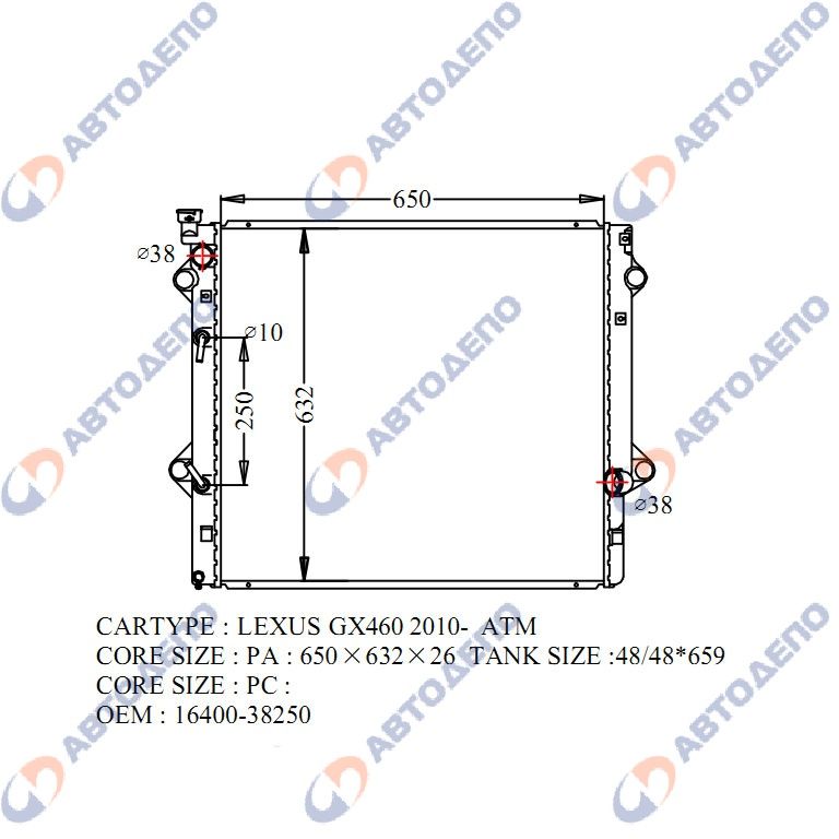 Радиатор охлаждения двигателя. TOYOTA LAND CRUISER PRADO GDJ150, GDJ150L, GDJ150W, GDJ155 TO-0742-36-AT-K