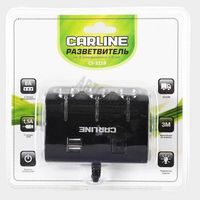 Разветвитель прикуривателя CARLINE CS-321B на 3 гнезда на 8A и 2 USB на проводе,цвет черный, cs321b