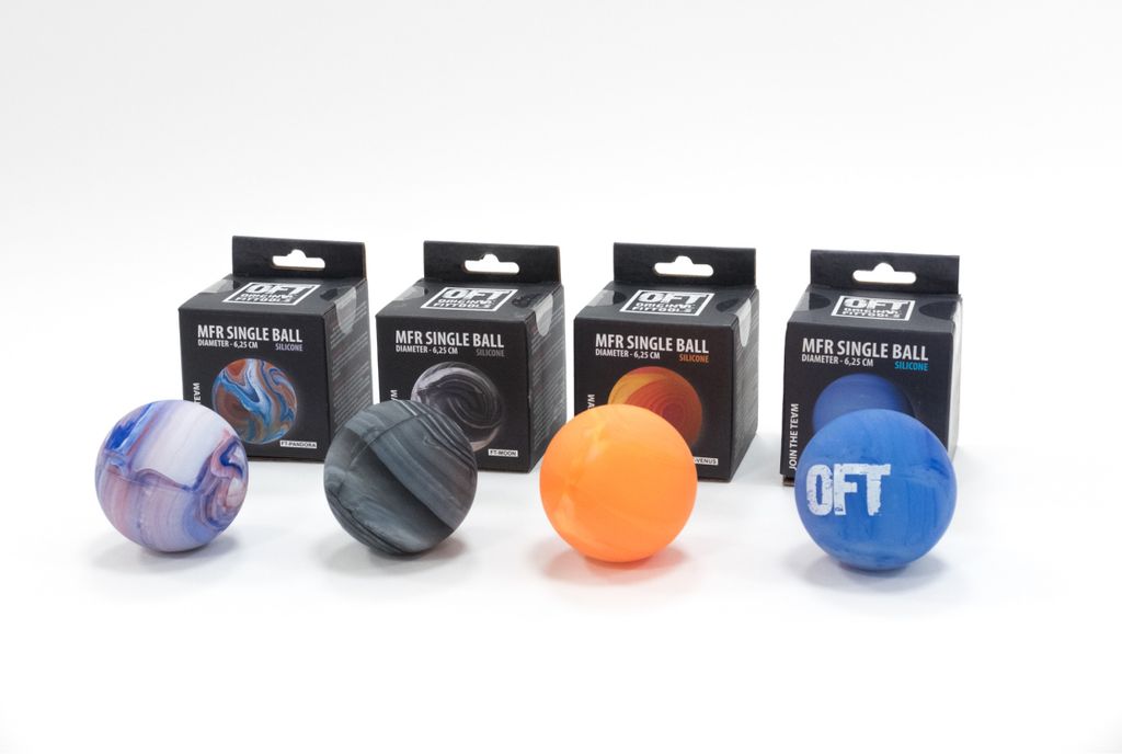 Массажный мяч OFT применяется для самостоятельного массажа (самомассажа) с целью снятия мышечных узлов, триггерных точек и спаек в фасциях — плотных соединительных тканях, окружающих мышцы. При нажатии мяч проникает глубоко в ткани, способствуя расслаблению напряжённых участков и улучшая кровообращение. Это помогает ускорить восстановление, облегчить боль и повысить общую подвижность.