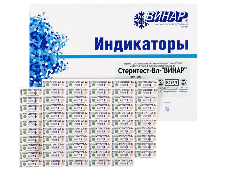 Индикатор Стеритест-Вл-Винар воздушной стерилизации химический интегрирующий одноразовый (5 класс, с журналом ф.257/у), 1000 тестов, Россия (ООО "НПФ "Винар")