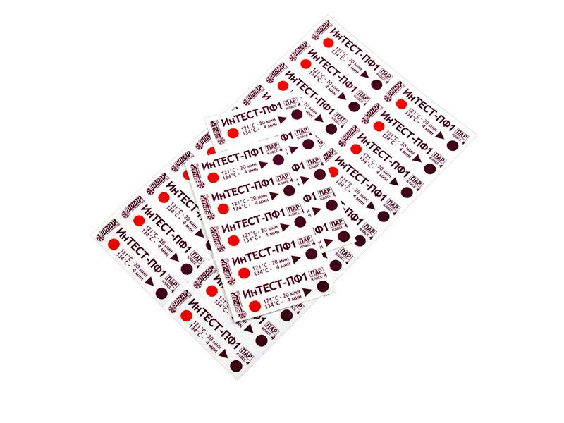 Индикаторы ИНТЕСТ-ПФ1 предназначены для оперативного визуального контроля соблюдения критических переменных паровой стерилизации – температуры стерилизации, времени стерилизационной выдержки и наличия насыщенного водяного пара в паровых стерилизаторах с многократной циклической откачкой воздуха по ГОСТ Р 51935-2002 (EN 285-95) и EN 13060-2011.