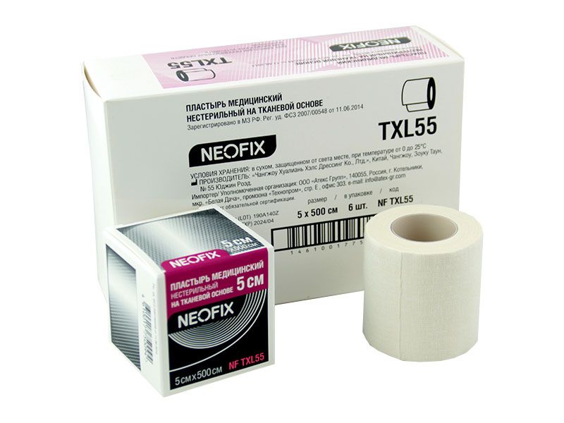 Пластырь медицинский "Neofix TXL" 5*500 см нестерильный на тканевой основе, 6 штук в упаковке, Китай (Changzhou Hualian Health Dressing Co., Ltd.)