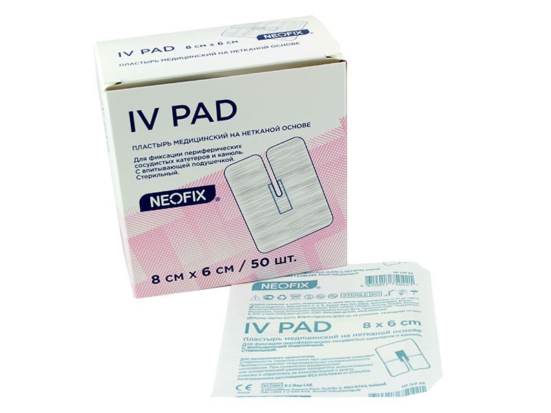 Пластырь медицинский "Neofix IV Pad" 8*6 см на нетканой основе (для фиксации периферических сосудистых катетеров и канюль), 50 штук в упаковке, Египет (Pharmaplast S.A.E.)