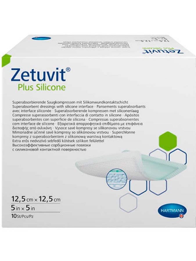 Повязка суперабсорбирующая с контактным слоем из силикона, стерильная Цетувит Плюс Силикон/Zetuvit plus Silicone, размер 12,5*12,5 см, Германия (Paul Hartmann AG) 413820