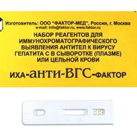 Набор реагентов ИХА-анти-ВГС-Фактор для иммунохроматографического выявления антител к вирусу гепатита С в сыворотке (плазме) или цельной крови, 25 анализов, Россия (Фактор-Мед Продакшн)