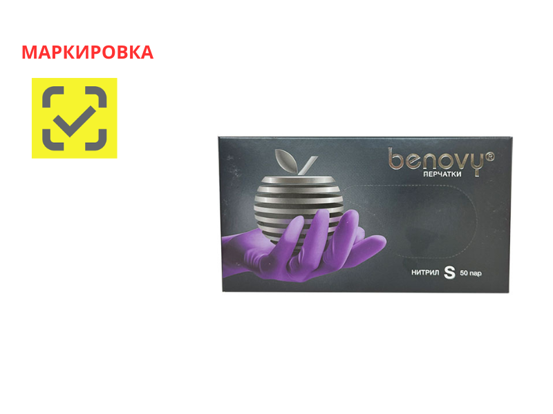 Перчатки Benovy смотровые нитриловые неопудренные нестерильные (текстурированные), сиреневые, размер S, 50 пар/упаковка, Малайзия (TG Medical Sdn.Bhd.) M203K2